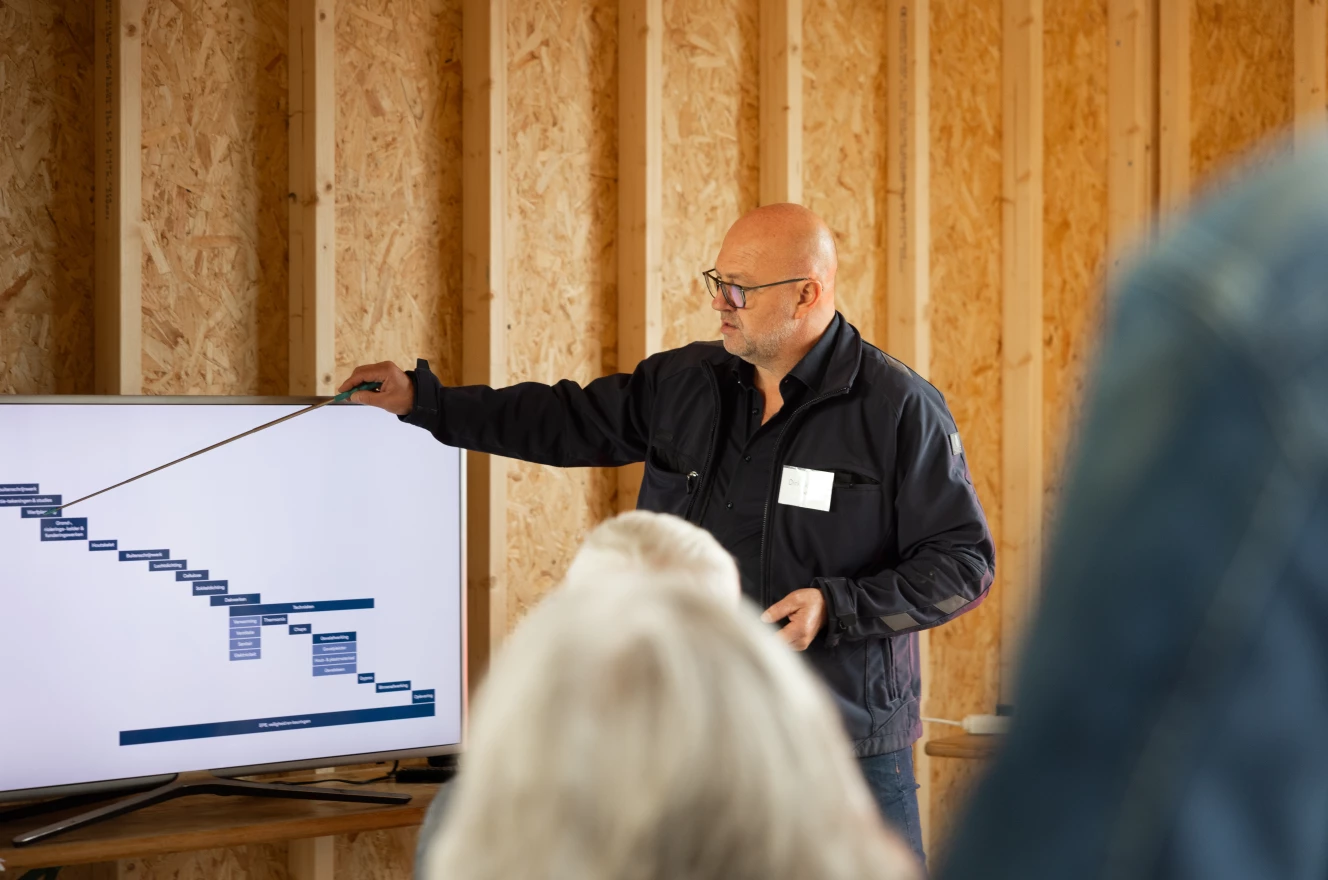 Tijdens de open huizendag krijg je een tastbaar beeld van houtskeletbouw. Je bent welkom in een woning die wind- en waterdicht is. De bouwheer en wij openen met een introductie. Tijdens de rondleiding geven wij, samen met onze vaste partners, verdere uitleg. Zo leer je meer over de bouwwijze, het bouwproces, de gebruikte materialen en verschillende technieken. Als ons enthousiasme je nog niet heeft aangestoken, dan zullen de nieuwe inzichten je zeker overtuigen.